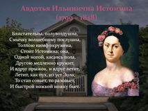 1. Первой русской балериной, вставшей на пуанты, была Авдотья Истомина - «Русская Терпсихора» (1799-1848). Ранее танцовщицы пытались становиться на большие пальцы ног, специальной балетной обуви в начале 19 века не было. Истомина стала реформатором в балете, она одна из самых известных балетных танцовщиц своего времени. Её имя воспето великим поэтом А.С.Пушкиным в произведении «Евгений Онегин».