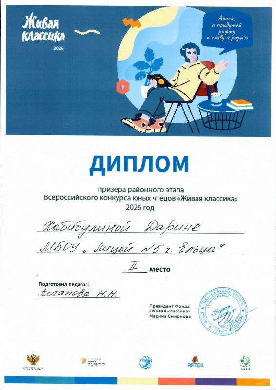 •Хабибулина Дарина – призер, занявшая почетное 2 место! Дарина также показала выдающиеся способности, продемонстрировав тонкое чувство слова и умение передавать эмоции.