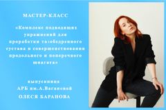 Сегодня прошёл мастер-класс для учащихся средних и старших классов хореографического отделения «Комплекс подводящих упражнений для проработки тазобедренного сустава и совершенствования продольного и поперечного шпагата» с выпускницей Академии Русского балета им. А.Я.Вагановой Олесей Барановой.